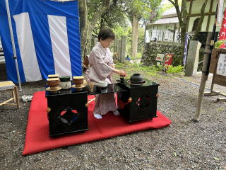 | 今春も林宗由と社中3名とで行いました。 お天気も良く、新緑がまばゆい中での奉茶と野点をしました。 |