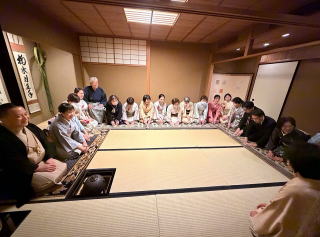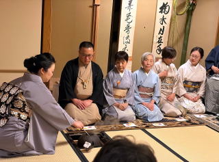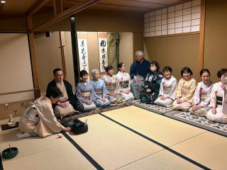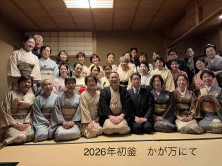 | 今年も「初釜」をかが万茶室で行いました。 社中の皆様と楽しく過ごしました。かが万の美味しい料理を堪能しました。 本年も充実したお稽古や行事を皆様とできるようにしたいと思っています。 |